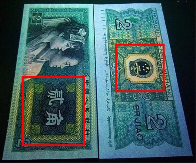 绿珍珠:纸币背面右侧的“2”在起笔处的“内弯处”有绿色的一点,看起来像珍珠的形状,故称“绿珍珠”。